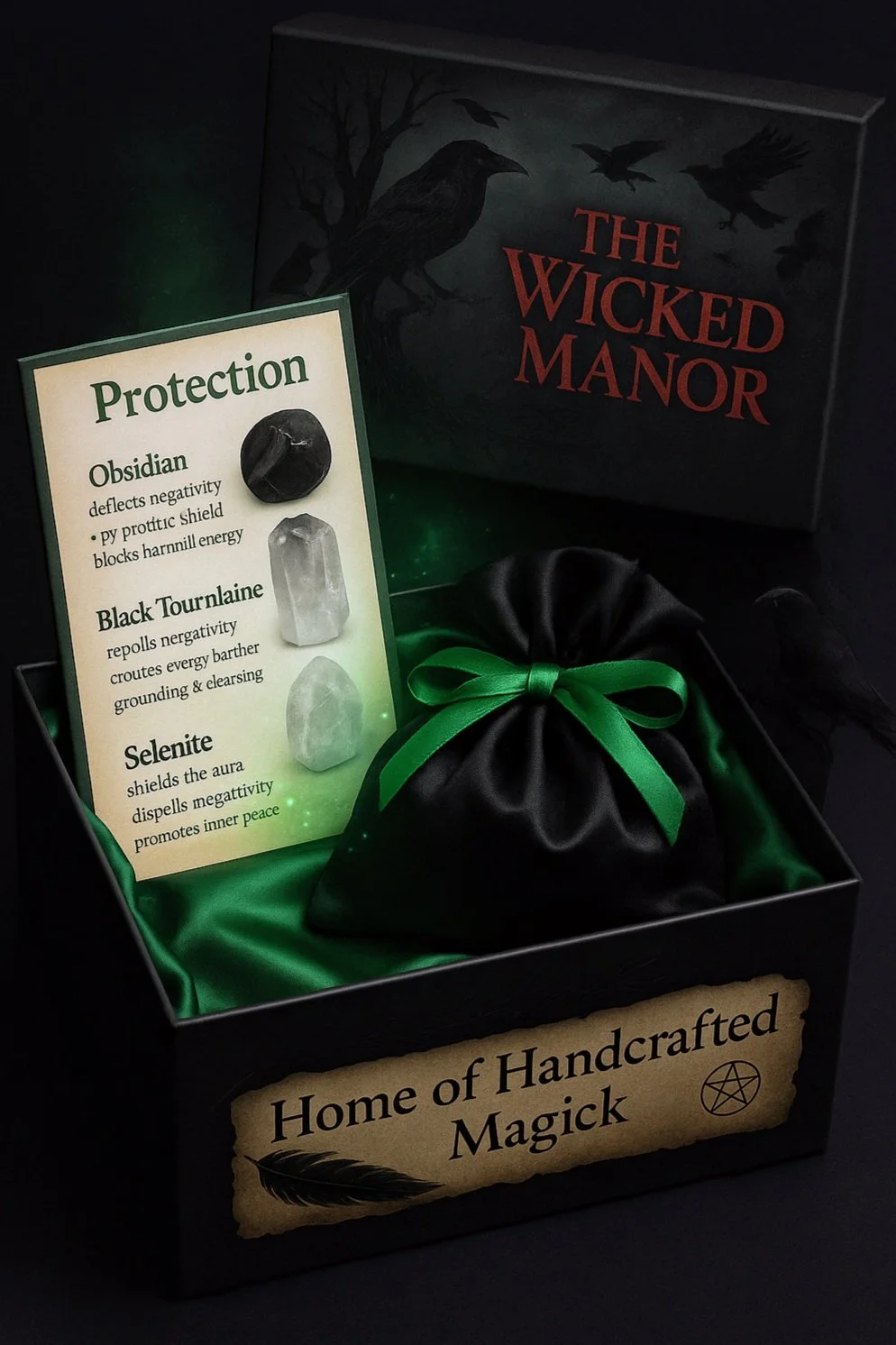 handcrafted with care, this PROTECTION box is designed to create a powerful shield around your energy,home,and spirit. Each item is selected to support grounding, banishing negativity,and enhancing energetic safety.