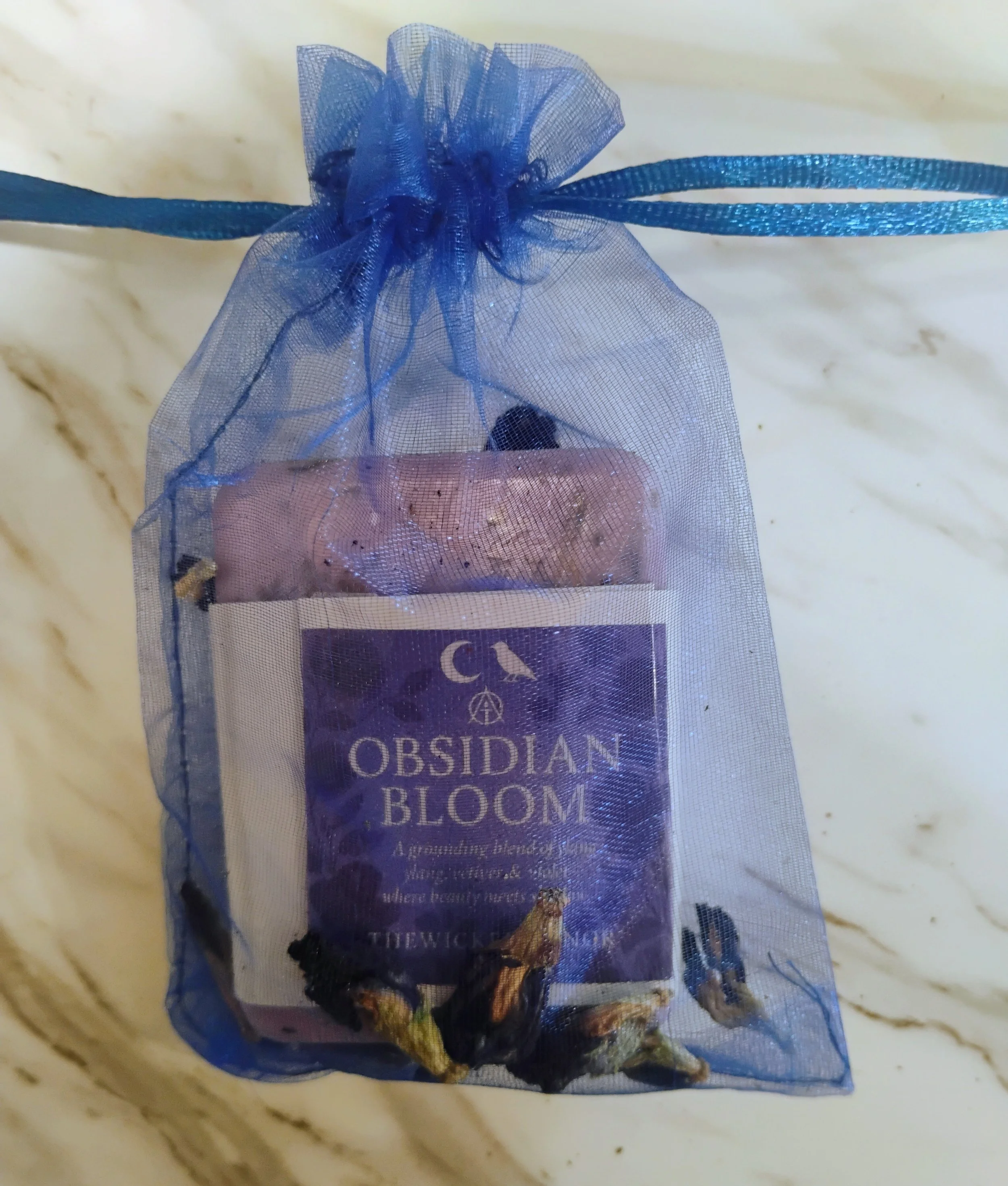 Obsidian Bloom channels the grounding strength of obsidian with an intoxicating blend. It's deep earthy-floral aroma invites you to slow down, breathe deeply, and reconnect with your inner power. perfect for grounding rituals, protective baths, or simply embracing your darker elegance, this bar transforms every wash into a moment of mystical renewal.